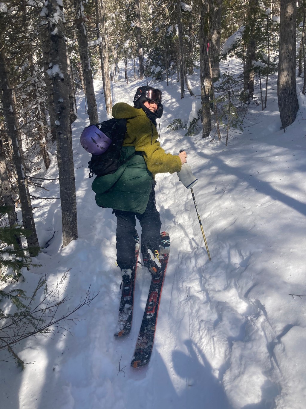 A really huge celebration is something that has materialized after literal years of wanting to learn to do it, which is uphill skiing in skins. The move to the region I’m in now was a result of an offer to contribute to the teaching of English as a second language to elementary school students in the area. That was only for an 8 month period and ended last spring, but a few months after moving here I realized this was the region I had wanted to come to for a week or so to learn how to go up a mountain in skins (vegan).